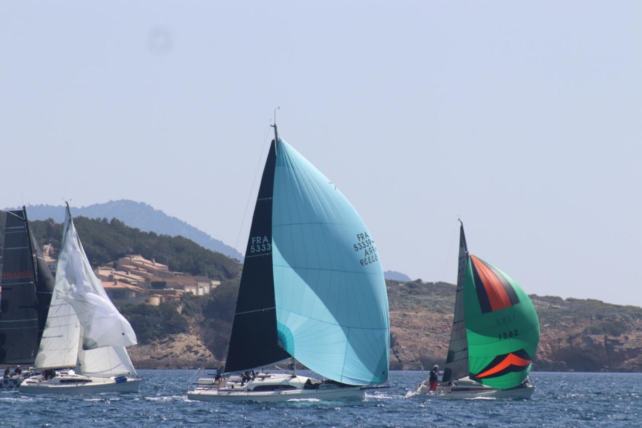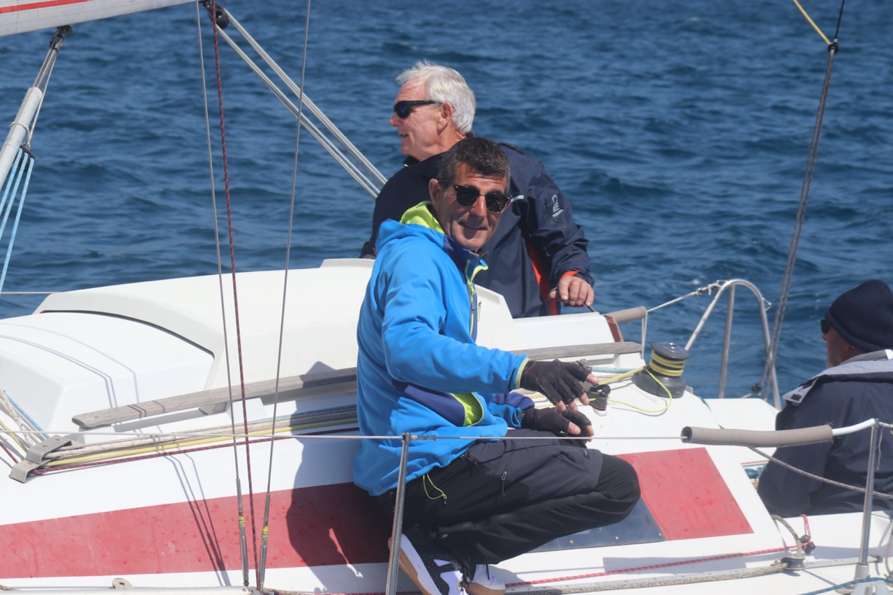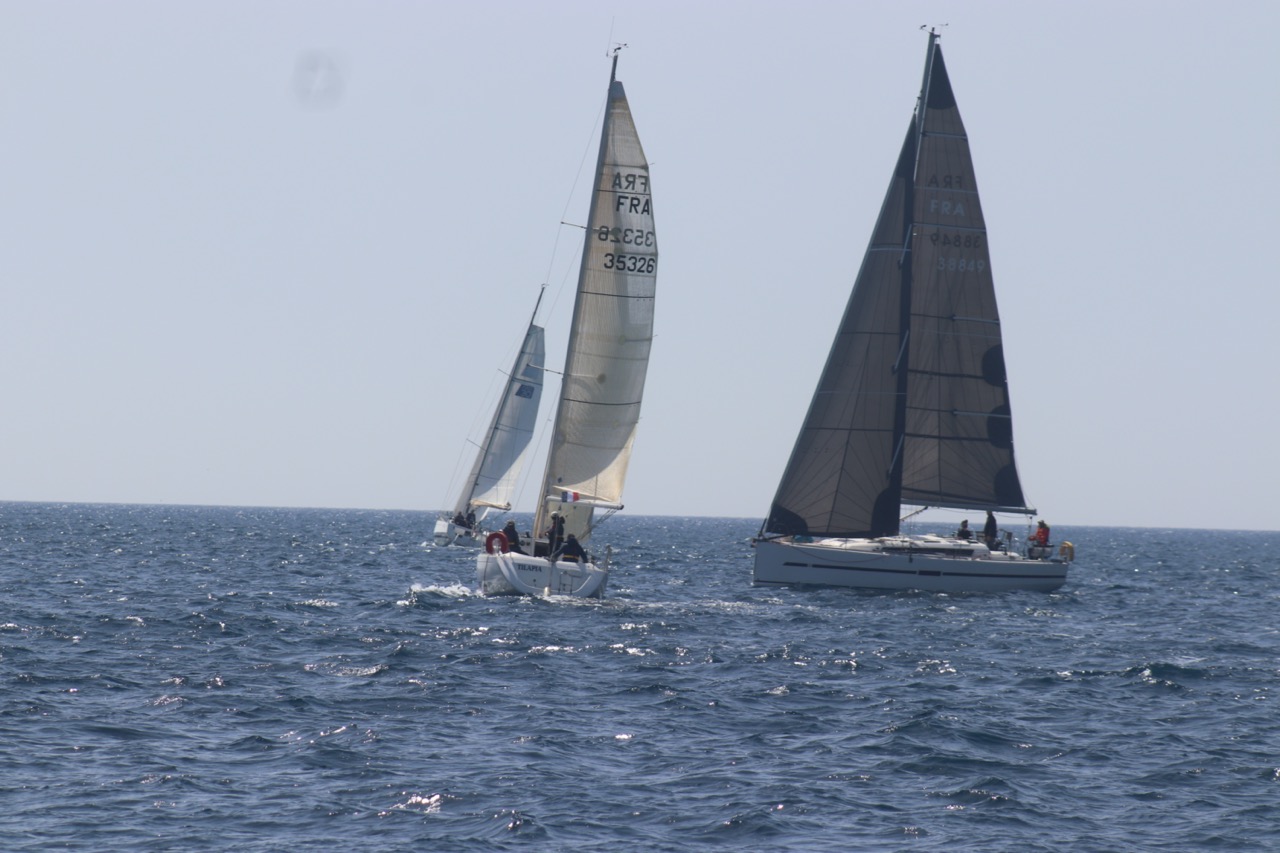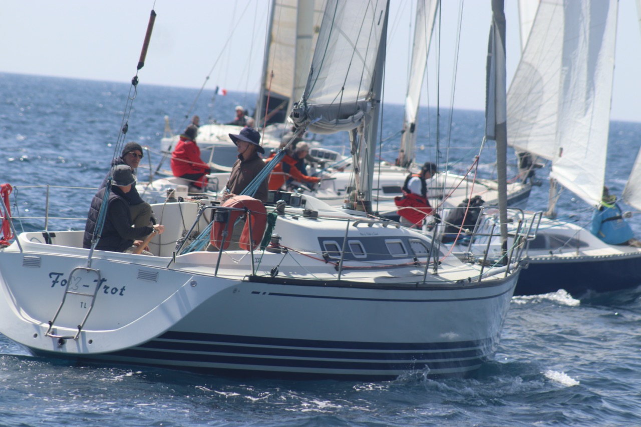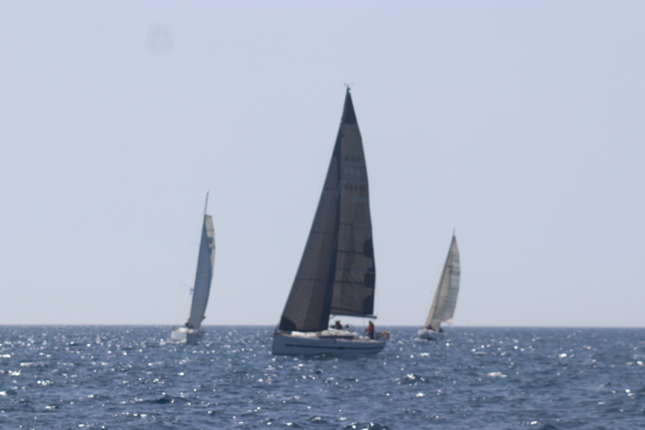 La régate s’est déroulée dans des conditions idéales : 12/17 noeuds de vent d’est. Après un rappel général, le départ de la régate a pu avoir lieu. Le parcours 2 était mouillé : bouée dans le sud-ouest de l’île Rousse, bouée de Sanary, bouée de l’île Rousse, bouée de Sanary et retour à Bandol.