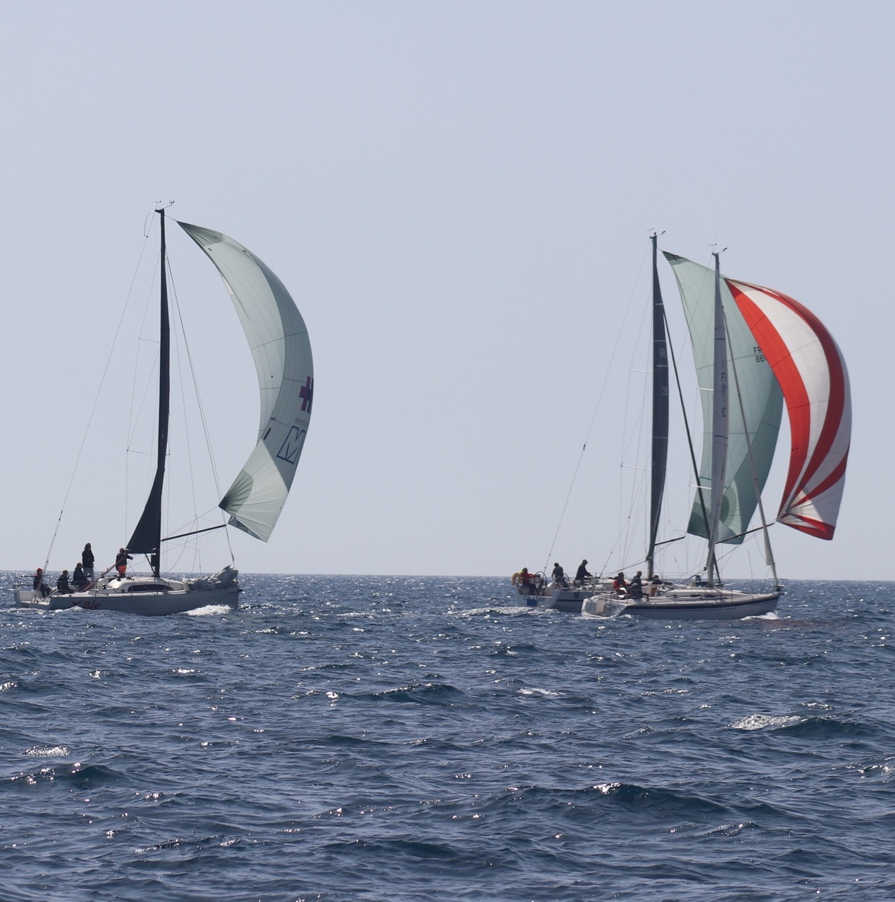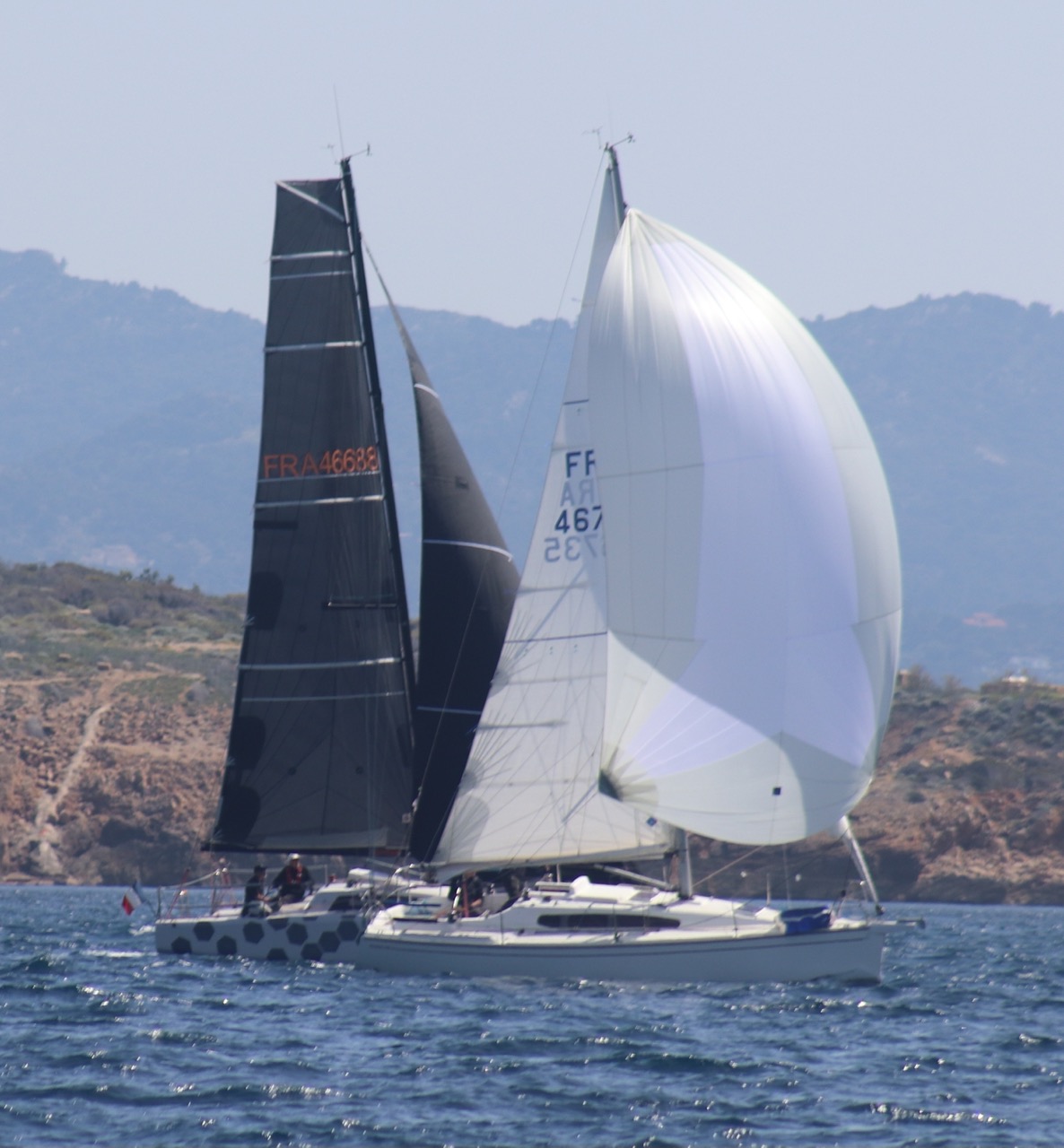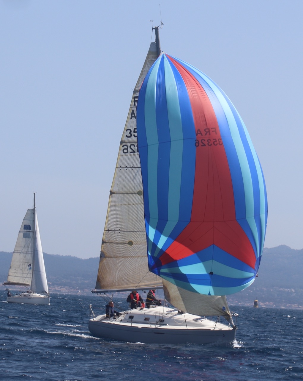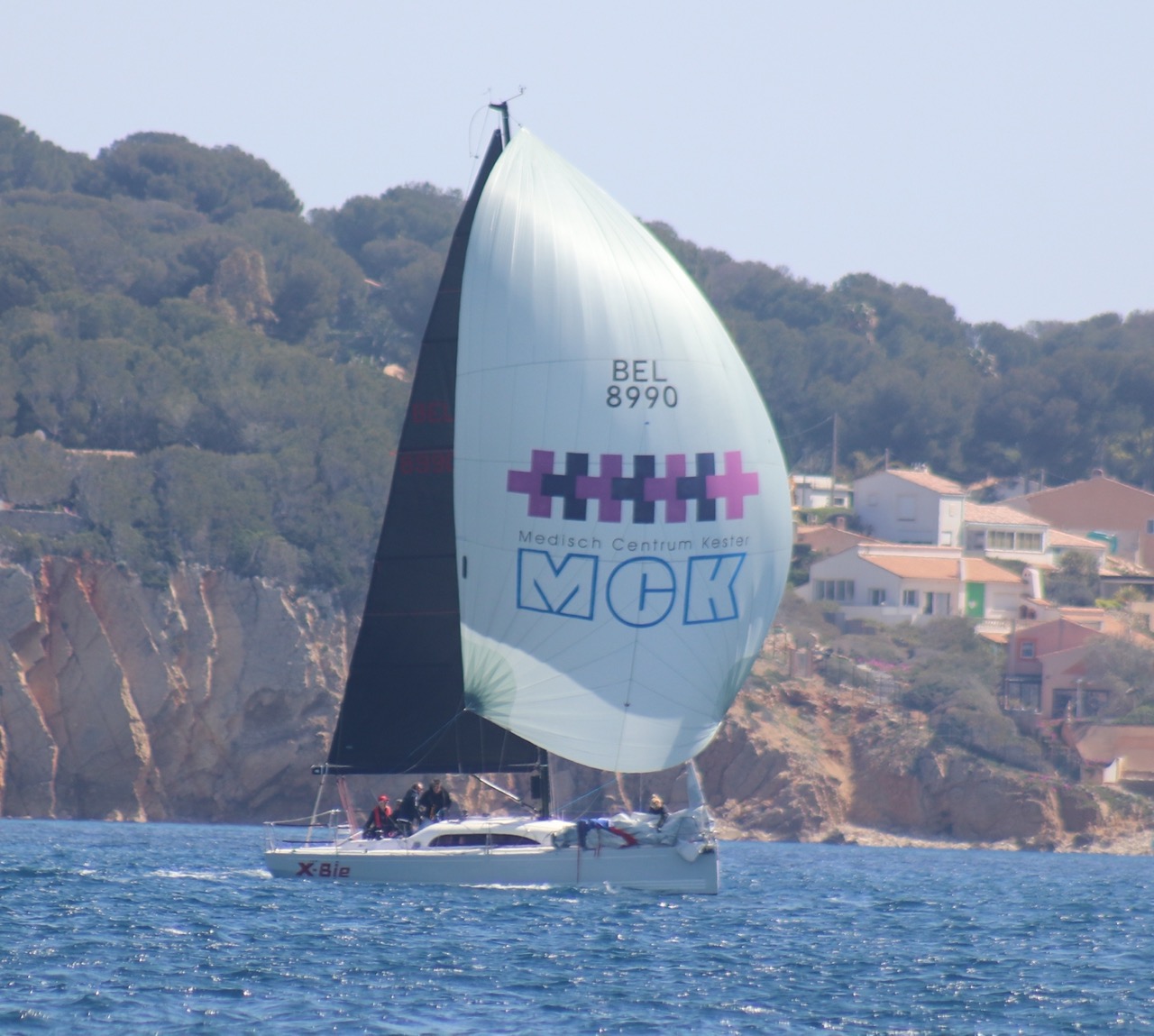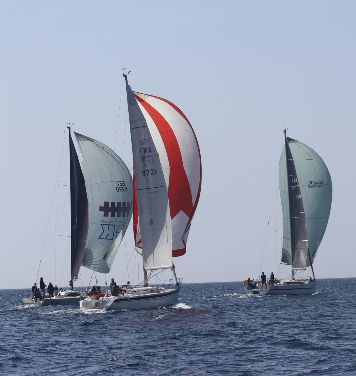 La régate s’est déroulée dans des conditions idéales : 12/17 noeuds de vent d’est. Après un rappel général, le départ de la régate a pu avoir lieu. Le parcours 2 était mouillé : bouée dans le sud-ouest de l’île Rousse, bouée de Sanary, bouée de l’île Rousse, bouée de Sanary et retour à Bandol.